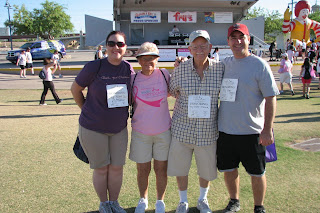 Our day started a lot like last year's Mother's Day. We got up early and made the trek out to Tempe Town Lake. This year it was just Jimmy, myself, Arrana and Corky. We got there in plenty of time to park (this time in the US Airways garage) and collect freebies from the sponsors. Here are some pics. We did 5K in less than an hour and hurried home to get brunch going. April and Richard came over then Michelle, Chris and babies. It was a nice, simple brunch with fruit, croissants, yogurt and granola, juice, etc.